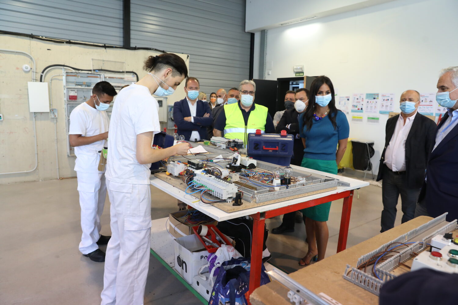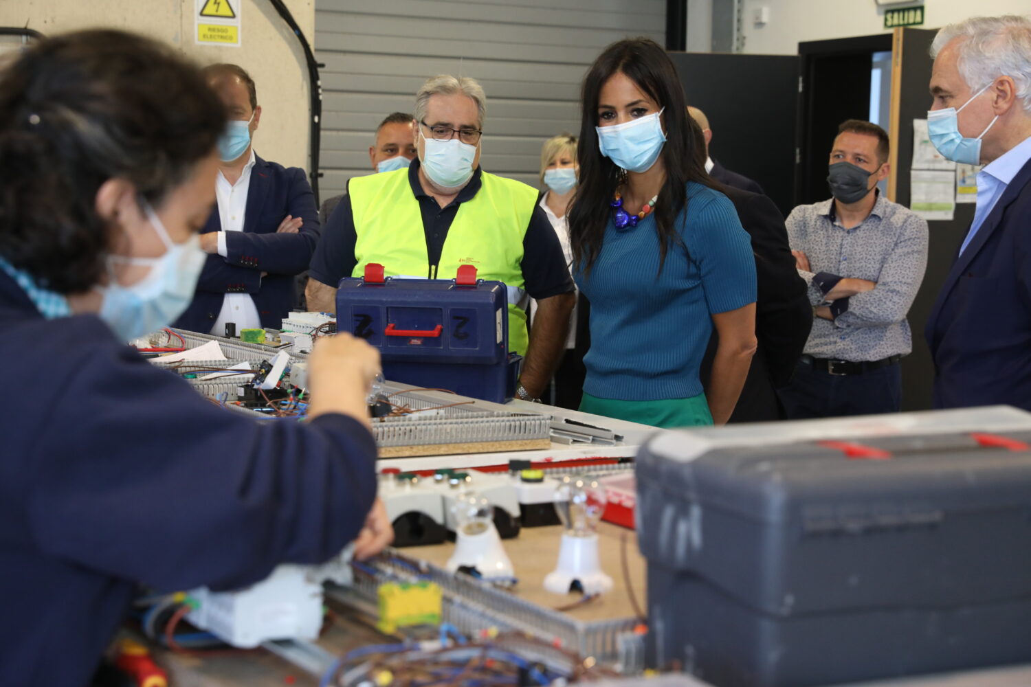 La vicealcaldesa de Madrid, Begoña Villacís, acompañada del delegado de Desarrollo Urbano, Mariano Fuentes, ha visitado las instalaciones de la Fundación Laboral de la Construcción en el distrito de Vicálvaro. Durante la visita, a la que han asistido, entre otros, su presidente, Francisco Ruano; el presidente de CEIM, Miguel Garrido, y representantes de los sindicatos madrileños, han recorrido las diferentes aulas de formación, la nave que es utilizada como taller, la campa de prácticas con maquinaria, el taller de soldadura y una nave multidisciplinar.