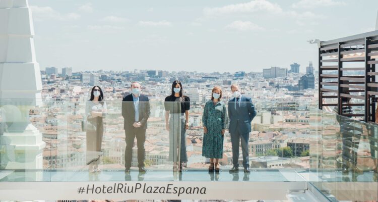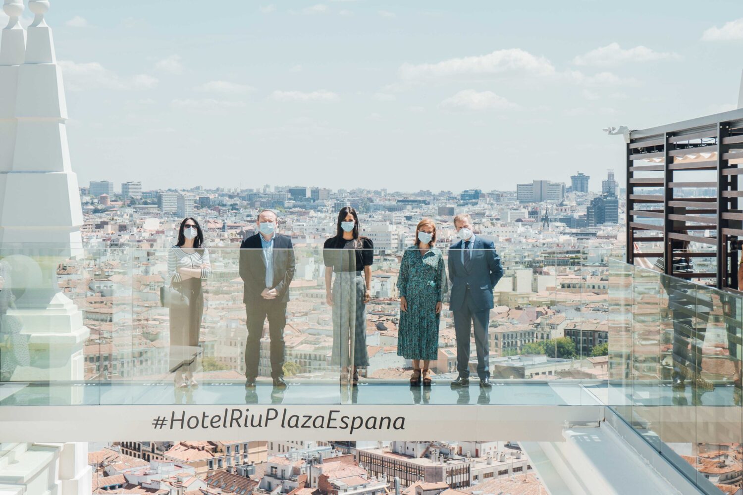 La vicealcaldesa de Madrid, Begoña Villacís, acompañada del delegado del Área de Economía, Innovación y Empleo, Miguel Ángel Redondo; la concejala delegada de Turismo, Almudena Maíllo; y la secretaria general de la Asociación Hotelera de Madrid, Mar de Miguel, ha visitado esta mañana el Hotel Riu Plaza de España, donde ha mostrado su apoyo al sector hostelero tras la crisis de la COVID-19.