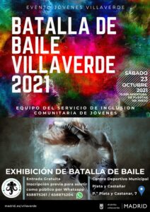 Breakdance, hip-hop, house dance, estilos libres y personales y otras modalidades de baile urbano se podrán ver el próximo sábado, 23 de octubre, en la primera Batalla de Baile Freestyle de Villaverde. La exhibición será en el Centro Deportivo Municipal Plata y Castañar a partir de las 16:00 h. La cita está organizada por la Junta Municipal de Villaverde a través del Departamento de Servicios Sociales y de su Servicio de Inclusión Comunitaria para jóvenes desde la calle.
