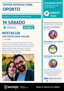 Este fin de semana del 13 al 15 de marzo Carabanchel acoge en sus espacios municipales actividades para todos los públicos. Desde cuentos y teatro para toda la familia hasta conciertos que permitirán viajar por diferentes músicas del mundo. Consulta la programación de las bibliotecas y los centros culturales para no dejar pasar ningún plan. Además, el distrito forma parte de LuzMadrid 2026.