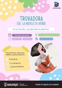 La Cía. La bicicleta Verde presenta esta función sobre una mujer que no aparece en los libros de historia. Mujer, madre y trovadora. Entre hortalizas, pucheros, nanas y lavar ropa, una trovadora tiene que preparar un cuento para el rey. En el castillo se decidirá su destino.