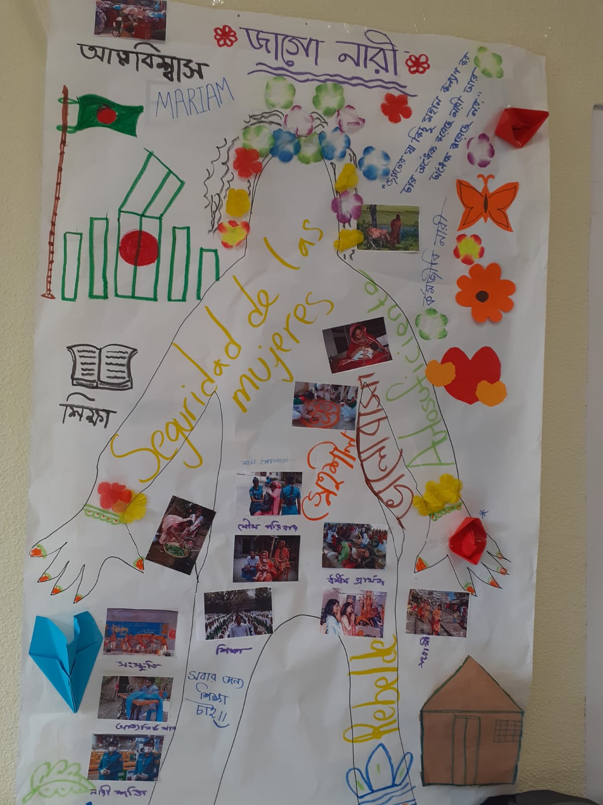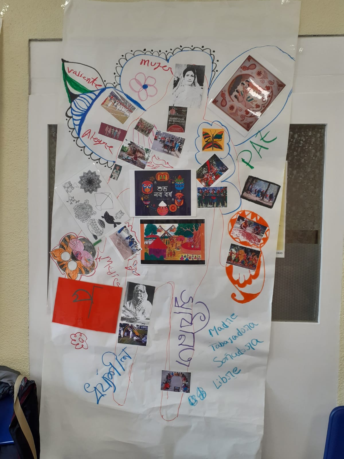 El Espacio Annette Cabelli ha acogido la exposición Palabras para la ciudadanía de las mujeres migrantes. Fruto de los diferentes trabajos realizados en los espacios de clases de español que se realizan en el distrito a lo largo del mes de marzo, esta exposición de pinturas y manualidades ha servido para una puesta en común. Con objetos y dibujos típicos de sus países de origen mezclados con otros de nuestro país, estas manualidades mezclan también frases en sus idiomas originales con palabras en español que reflejan cómo ven su situación en Madrid, su ciudad de acogida.