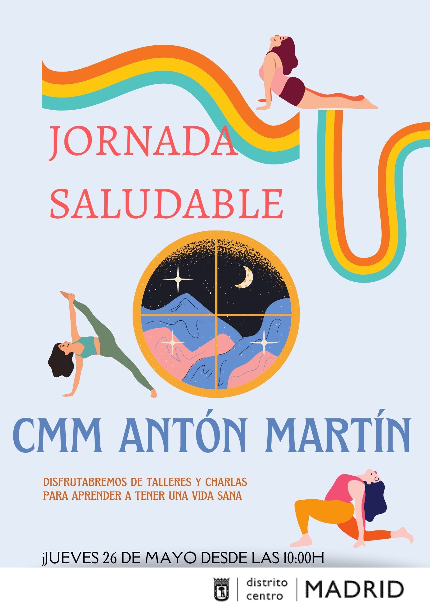 A lo largo del día se podrá disfrutar de diversas actividades en el CMM Antón Martín, a través de los siguientes talleres saludables: dibujo y pintura (de 9:45 a 13:15 h), Activa tu cuerpo (de 11:00 a 11:45 h), en italiano sobre nutrición (de 12:00 a 12:45 h), informática (de 10:00 a 12:45 h), yoga (de 15:00 a 18:45).