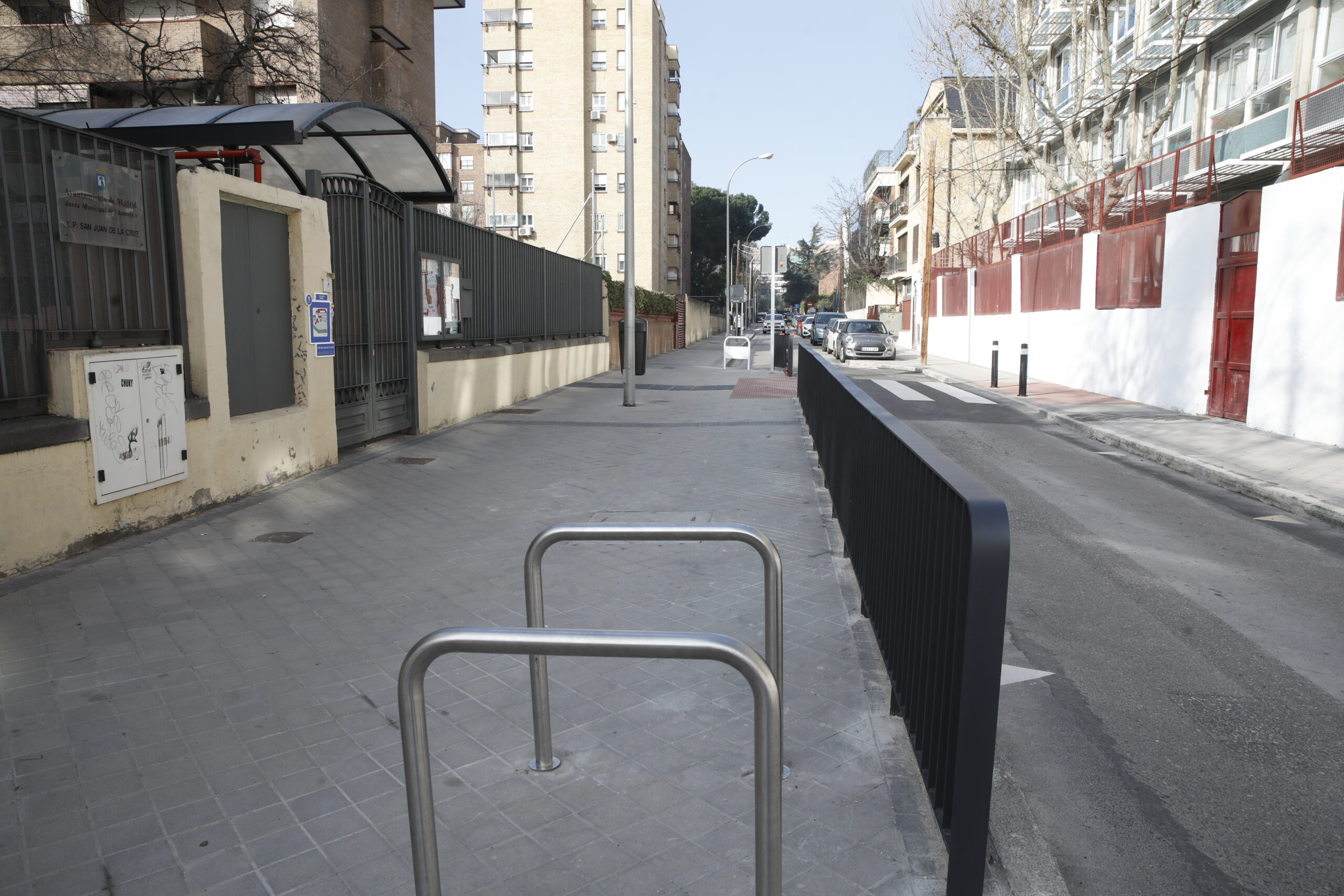 - Entrar al cole con la mochila de libros, la de las extraescolares, beso de despedida mientras suena la campana es uno de los momentos que requieren sosiego. También la recogida del cole, merienda en mano y despedidas de los compañeros. Con los trabajos, se ha habilitado una zona estancial frente al CEIP San Juan de la Cruz hasta donde se ha desplazado y elevado el paso de peatones para favorecer la llegada y salida de los escolares.