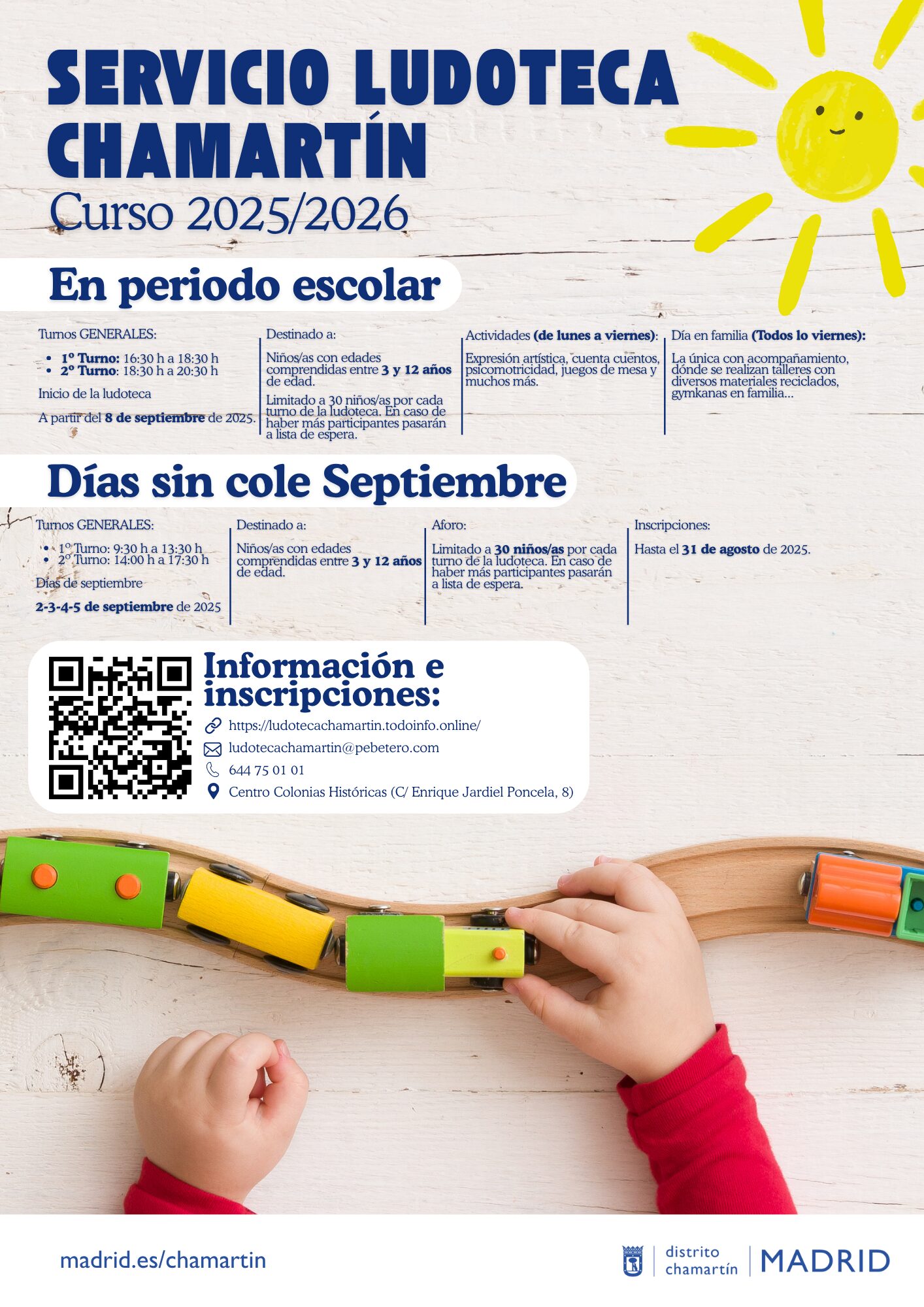 Después de las vacaciones, sabemos que la vuelta a la rutina se hace un poco cuesta arriba… Por eso, durante la primera semana de septiembre, los días sin cole del 2 al 5, el servicio de ludoteca del Centro Sociocomunitario Colonias Históricas en Chamartín ofrece 60 plazas para aquellas familias que requieran sus servicios para el cuidado de los más pequeños.