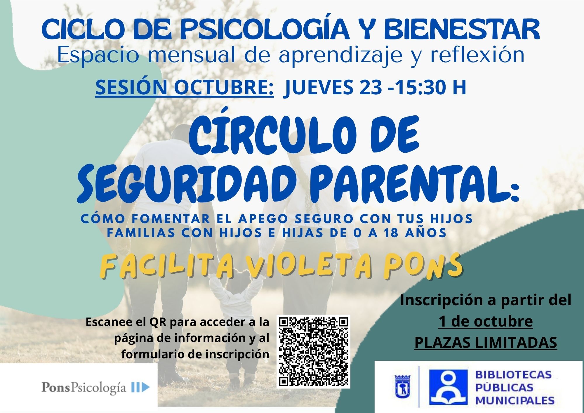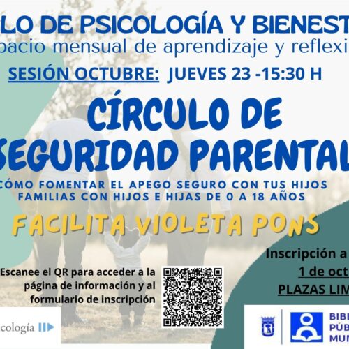 Ese día, a las 15:30 h, dentro del Ciclo de Psicología y Bienestar, se celebrará el encuentro ‘Círculo de Seguridad Parental: Cómo fomentar el apego seguro con tus hijos’, dirigido a familias con hijos de 0 a 18 años. Puedes inscribirte a través de este enlace.