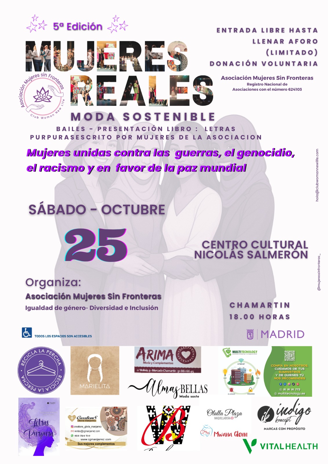 La quinta edición de ‘Mujeres Reales’ organizado por la Asociación Mujeres Sin Fronteras y la junta municipal trae al distrito una muestra de moda sostenible, danza y literatura. Se presentará el libro Letras Púrpuras.