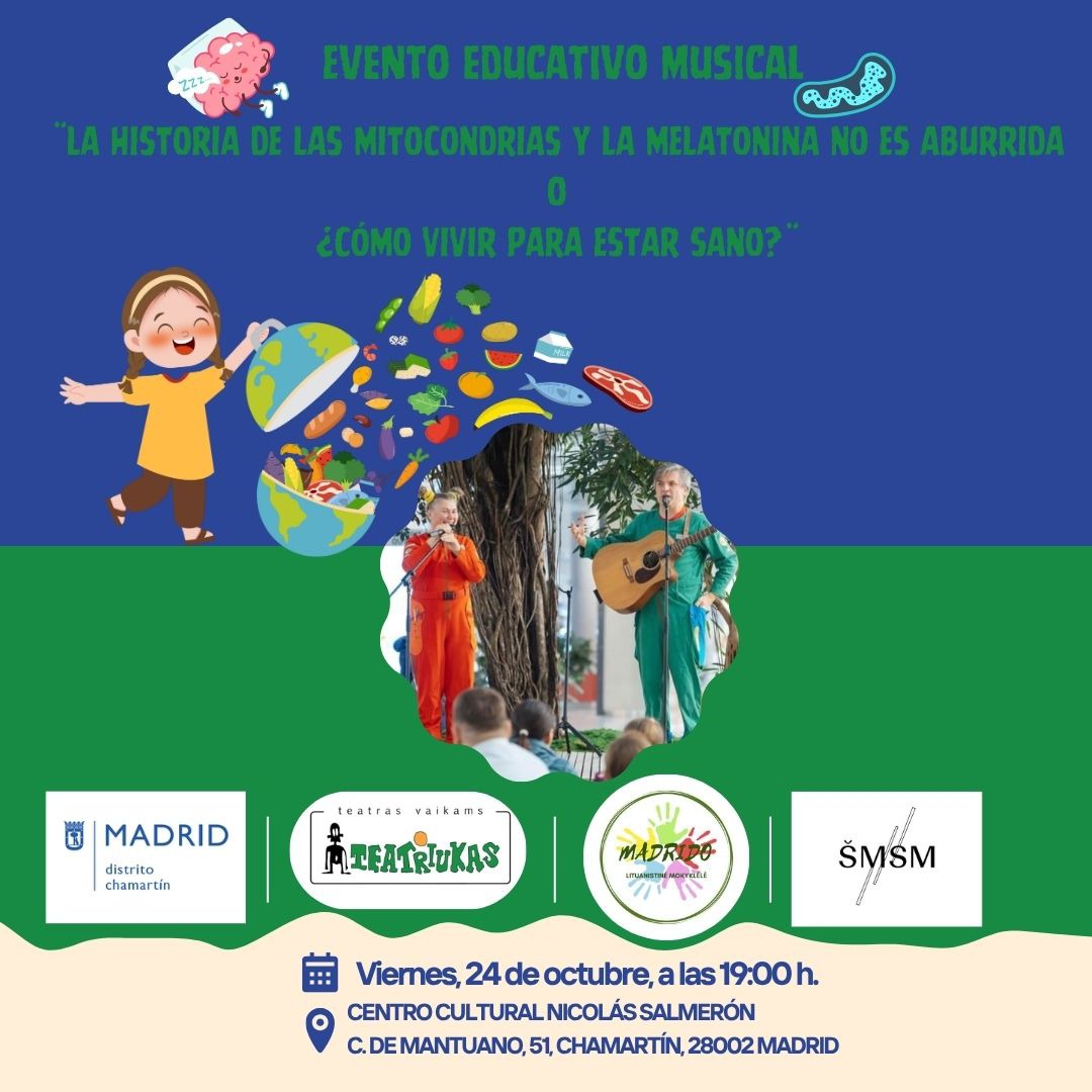 El Centro Cultural Nicolás Salmerón acoge en colaboración con la Embajada de Lituania en España el evento ‘La historia de las mitocondrias y la melatonina no es aburrida o cómo vivir para estar sano’. En este espectáculo educativo, los pequeños aprenderán sobre salud y ciencia de una forma original y divertida en una propuesta multilingüe.