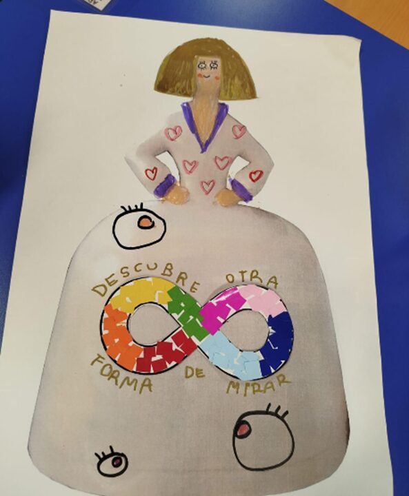 En la primera semana de colegio, tras las vacaciones de verano, la ‘Menina Infinita’ comenzaba a surgir. Una de las docentes del centro relata que el alumnado “lleva el arte dentro, tiene una manera especial de expresarse con el dibujo por lo que no resultó muy difícil. Queríamos aprovechar esta oportunidad que se nos daba para que todo el mundo descubriera que el autismo simplemente es otra forma de mirar, por lo que todos los niños del aula dibujaron un montón de ojos diferentes. Queríamos mostrar la infinitud de personas TEA que existen y toda su diversidad con el infinito de colores».