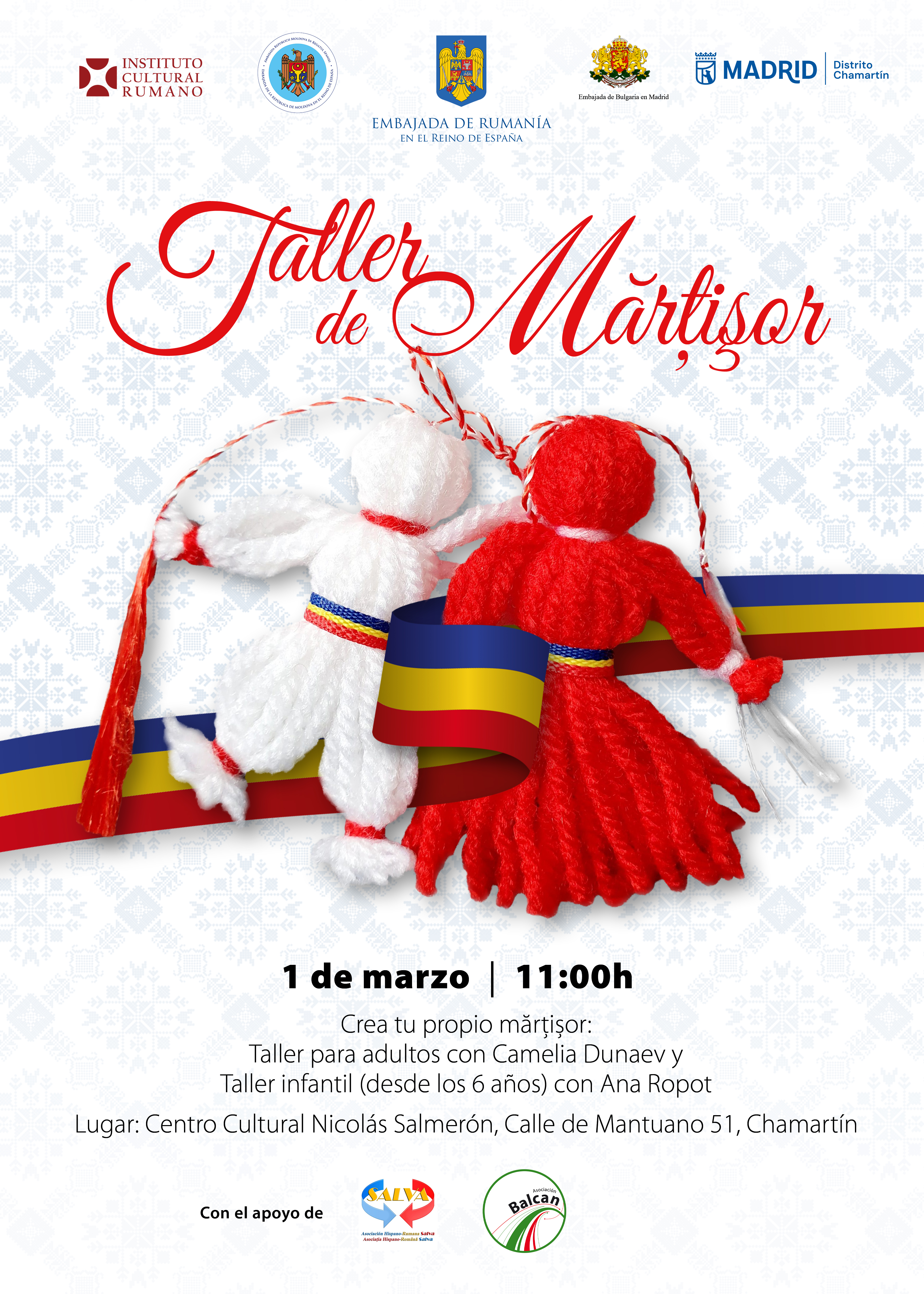 El domingo hemos organizado este taller que acerca la cultura de Rumanía y otros países como la República de Moldavia, Bulgaria y Macedonia del Norte al distrito de Chamartín. Consiste en realizar un cordón trenzado con hilos de dos colores: rojo y blanco. con el que damos la bienvenida a la primavera.