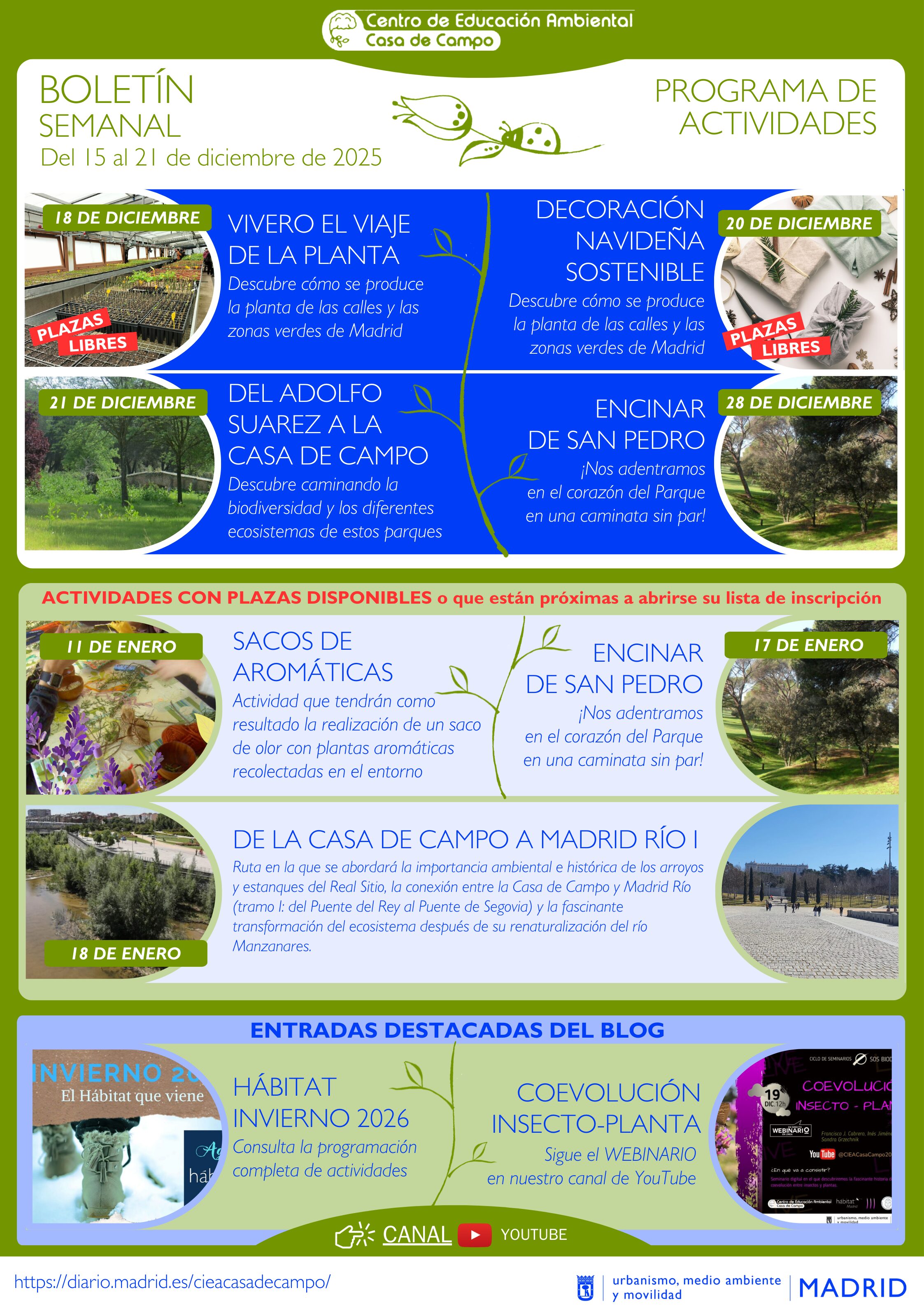 Como cada semana publicamos el BOLETÍN donde os proponemos las actividades ofertadas a través del programa educativo del CIEA Casa de Campo.