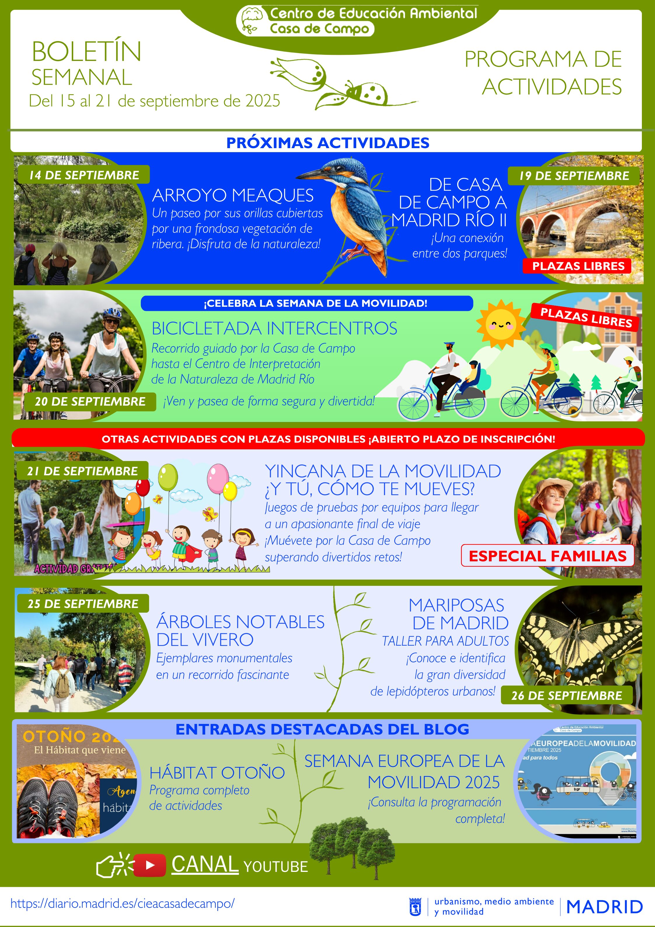 Como cada semana publicamos el BOLETÍN donde os proponemos las actividades ofertadas a través del programa educativo del CIEA Casa de Campo.