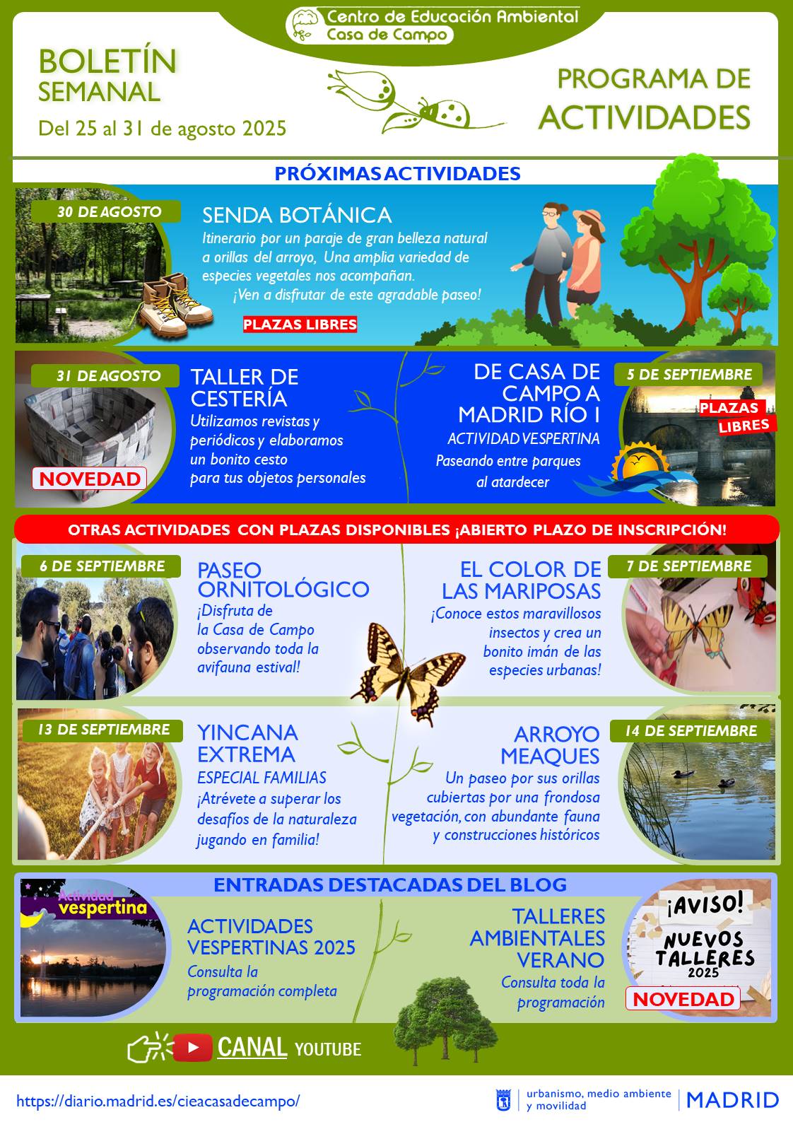 Como cada semana publicamos el BOLETÍN donde os proponemos las actividades ofertadas a través del programa educativo del CIEA Casa de Campo.