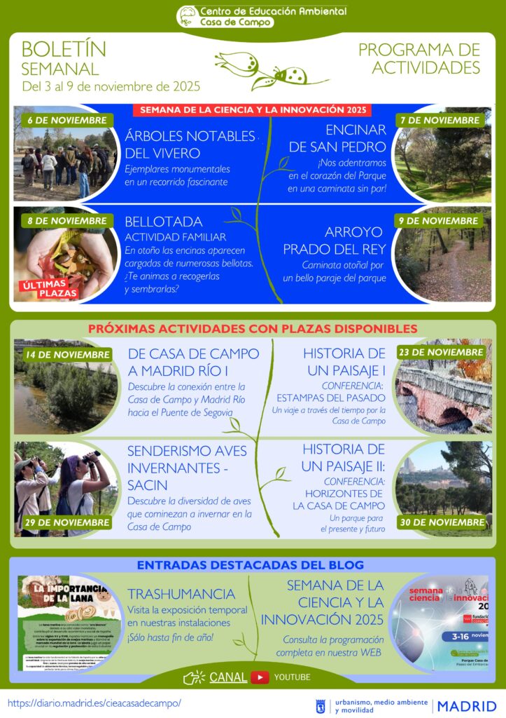 Como cada semana publicamos el BOLETÍN donde os proponemos las actividades ofertadas a través del programa educativo del CIEA Casa de Campo.