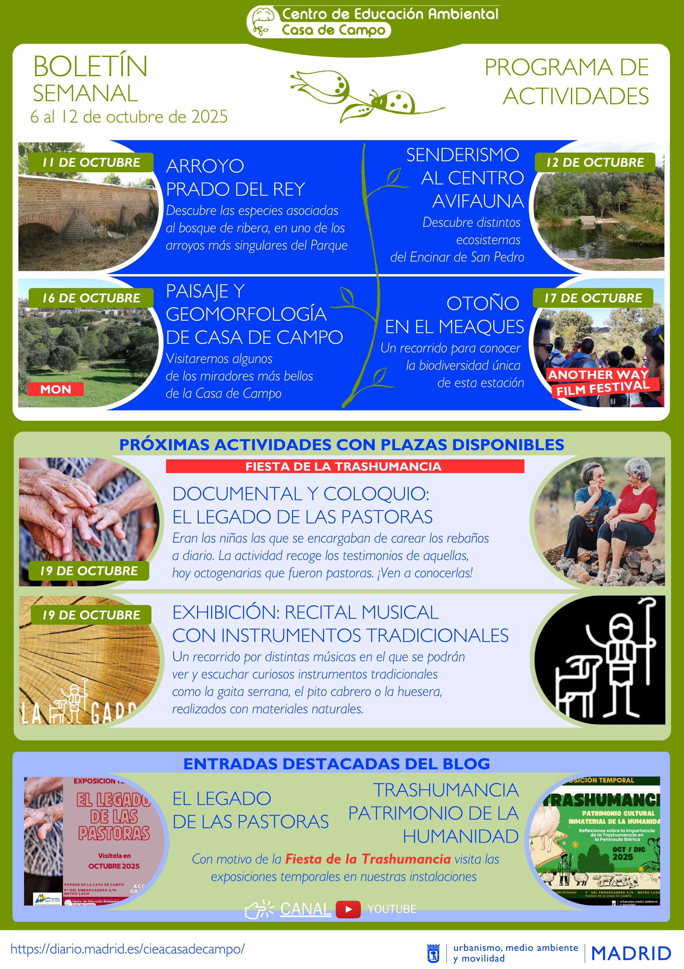Como cada semana publicamos el BOLETÍN donde os proponemos las actividades ofertadas a través del programa educativo del CIEA Casa de Campo.