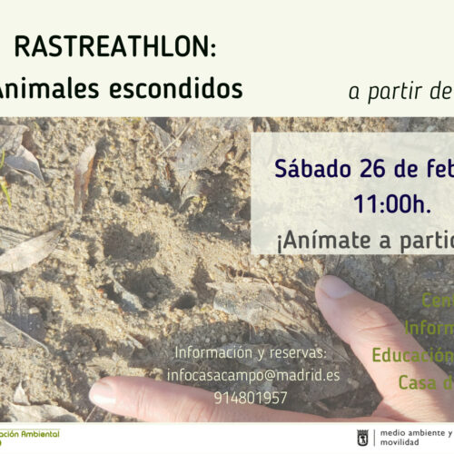 Itinerario guiado dirigido a usuarios/as a partir de 12 años. Itinerario circular en el que se descubrirá la presencia de animales en el parque mediante la observación de sus rastros, huellas y señales.