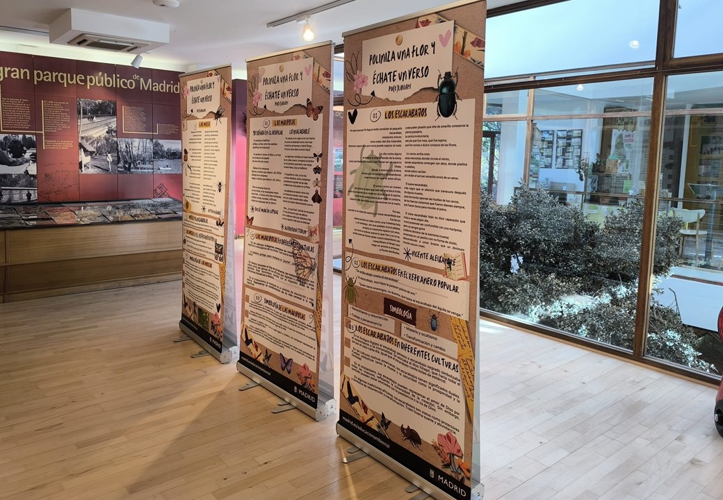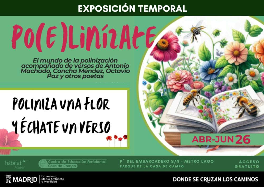 Durante los meses de abril, mayo y junio de 2026, podrás visitar una nueva exposición temporal en el CIEA Casa de Campo (en horarios de miércoles a domingo y festivos de 10:00 a 14:30 h. y viernes, sábados y domingos también de 16:00 a 18:30 h.), consistente en 12 paneles, con los que el Departamento de Educación Ambiental del Ayuntamiento de Madrid pretende sensibilizar sobre la importancia y el papel ambiental y social de los polinizadores así como sobre los riesgos que éstos sufren.