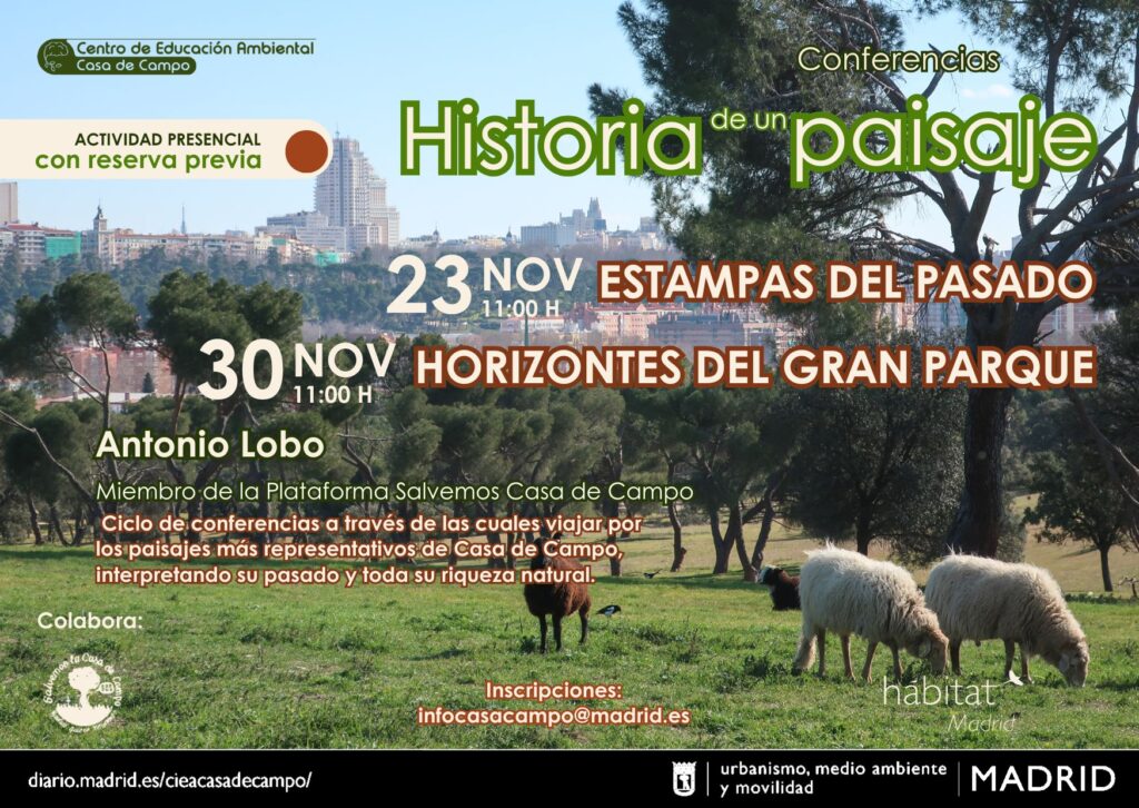 Si quieres saber más sobre cómo ha evolucionado el paisaje de Casa de Campo a lo largo de la historia y los retos futuros a los que se enfrenta el parque, no puedes perderte nuestro próximo ciclo de conferencias:
