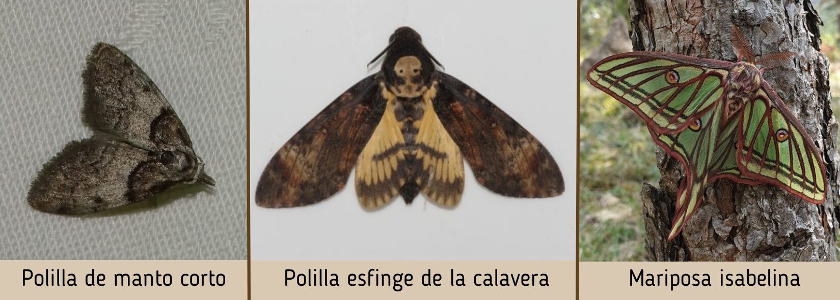 Sólo en nuestra ciudad se pueden encontrar decenas de especies diferentes, desde las diminutas Polillas de manto corto (Nola cucullatella), hasta las enormes Esfinge de la calavera (Acherontia atropos), pasando por la llamativa Isabelina (Graellsia isabellae).