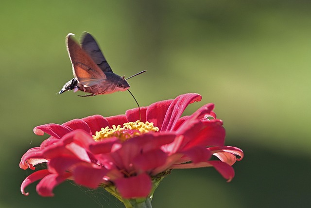 Hay personas que piensan que en España hay colibrís, pero en realidad se trata de esta curiosa polilla esfinge colibrí (Macroglossum stellatarum), nombrada por su similar aspecto y comportamiento.