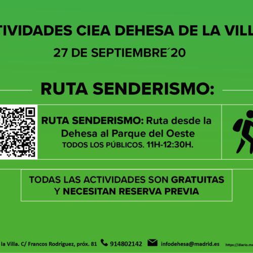 Os adjuntamos el programa de actividades de SEPTIEMBRE 2025 con sus horarios, para que podáis ir haciendo hueco en vuestras agendas. Las actividades tienen una duración aproximada de una hora y media. Programación SEPTIEMBRE 2025 CIEA Dehesa de la Villa ¡¡ No os quedéis sin vuestra plaza !! ______________________________________________ Las reservas se pueden hacer vía mail: infodehesa@madrid.es, vía […]