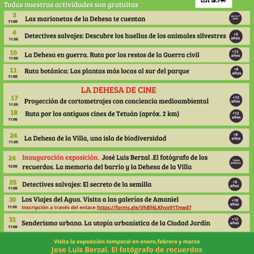 Os adjuntamos el cartel con las actividades que hemos preparado para enero 2026. Con el año nuevo hemos apostado por actividades nuevas como LA DEHESA DE CINE donde proyectaremos por primera vez cortometrajes con temática medioambiental y podreis disfrutar tanto de documentales ,como cortos de ficción. Os esperamos pronto Inscripción La inscripción se puede […]