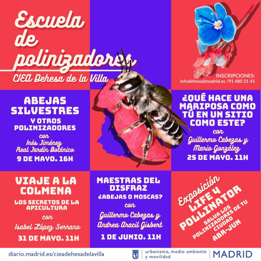 Nos encanta poder anunciaros las fechas de nuestro proyecto Escuela de polinizadores. Desde el CIEA Dehesa de la Villa llevamos tiempo realizando actividades, eventos, exposiciones y jornadas técnicas enfocadas a la protección, conocimiento y conservación de los polinizadores. Además, nos hemos rodeado de amigas para que nos ayudan a llevar el conocimiento siempre un paso más allá. Queremos compartir todo este conocimiento y que disfrutéis con estos bichos igual que lo hacemos en la Dehesa.