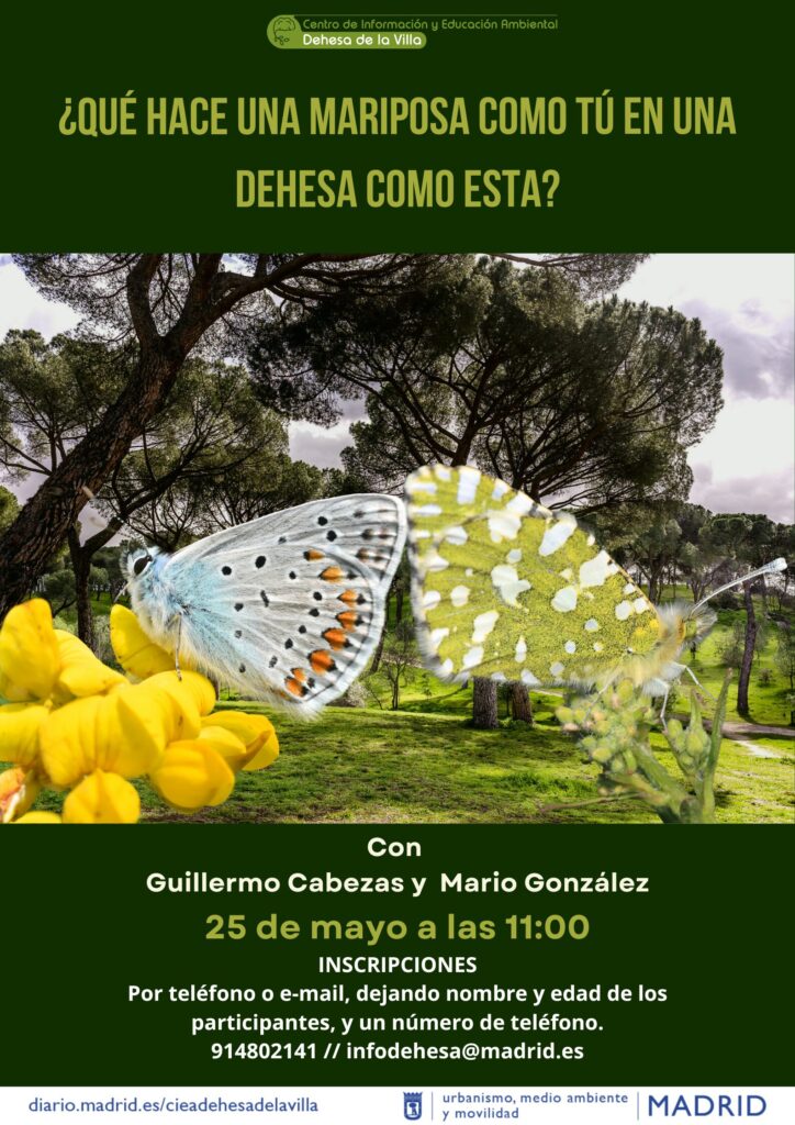 El 25 de mayo a las 11h continuaremos hablando de abejas de la mano de Guillermo Cabezas, pero también nos acompañará Mario González para revelarnos los secretos de las mariposas. Los dos forman parte del equipo que desarrolla el Censo Nacional de Polinizadores. Todo un lujo de acompañantes en este taller por la Dehesa de la Villa. Es un taller para personas adultas y peques mayores de 8 años.