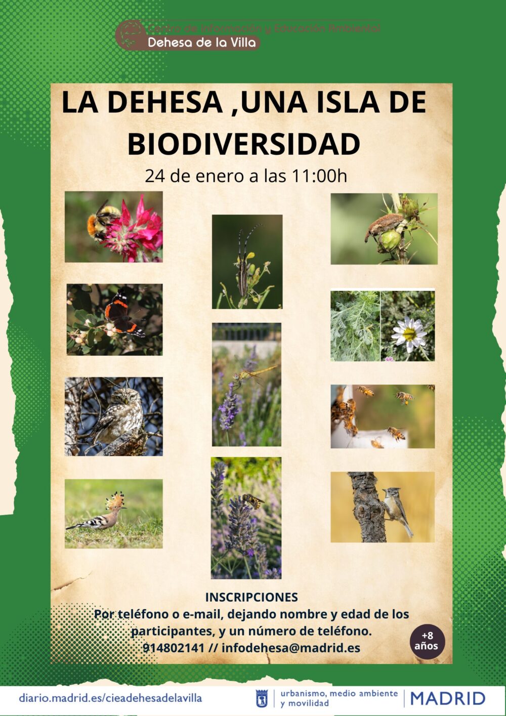 La inscripción se puede realizar mediante correo electrónico o telefónicamente: infodehesa@madrid.es // 914802141