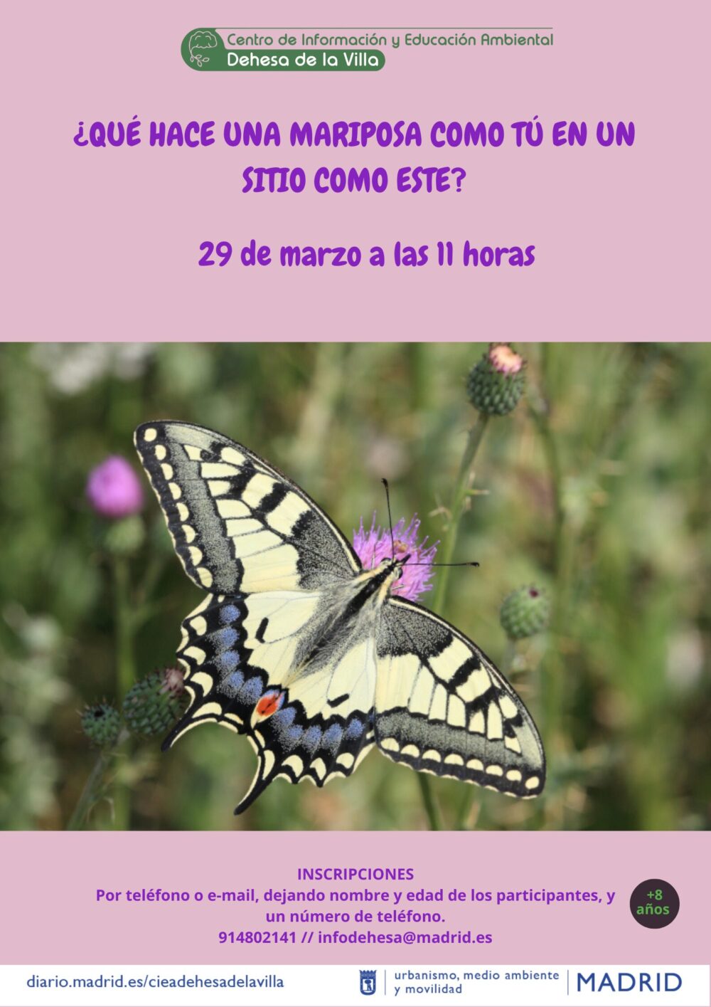 La inscripción se puede realizar mediante correo electrónico o telefónicamente: infodehesa@madrid.es // 914802141