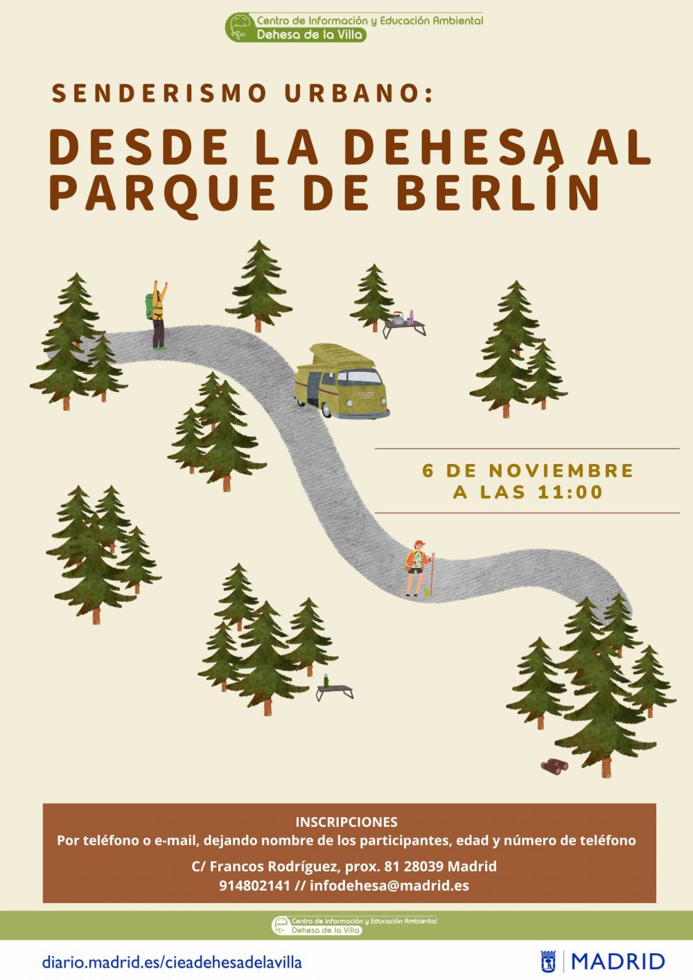 La inscripción se puede realizar mediante correo electrónico o telefónicamente: infodehesa@madrid.es // 914802141