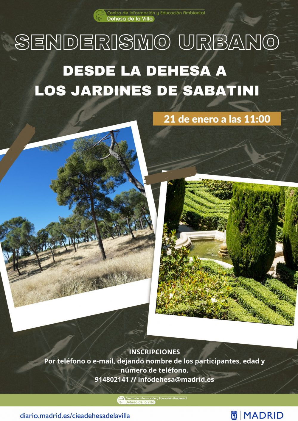 La inscripción se puede realizar mediante correo electrónico o telefónicamente: infodehesa@madrid.es // 914802141