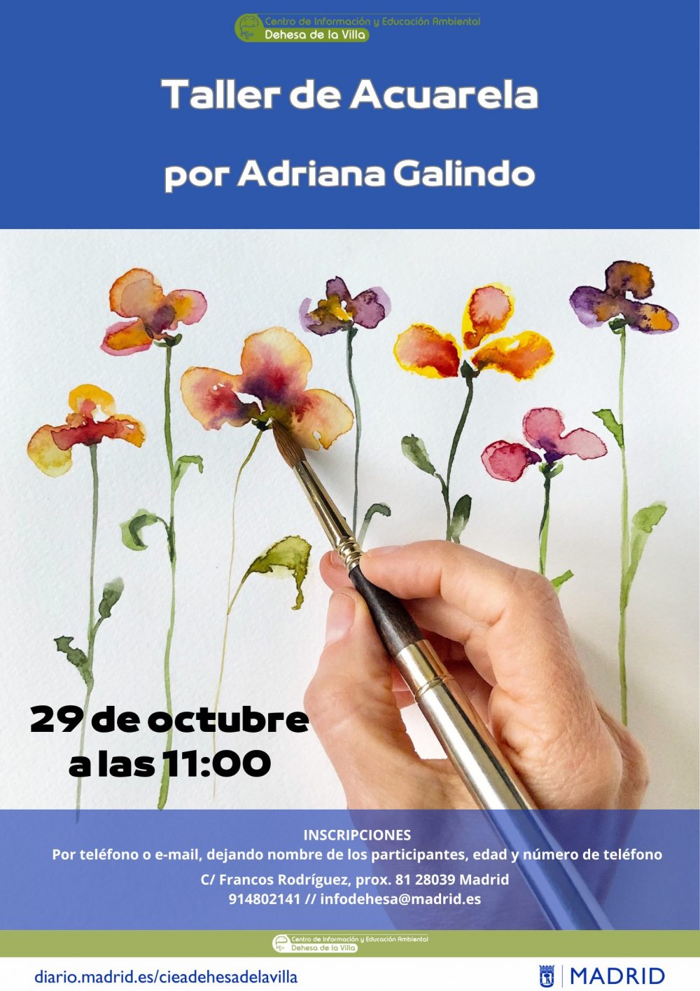 La inscripción se puede realizar mediante correo electrónico o telefónicamente: infodehesa@madrid.es // 914802141