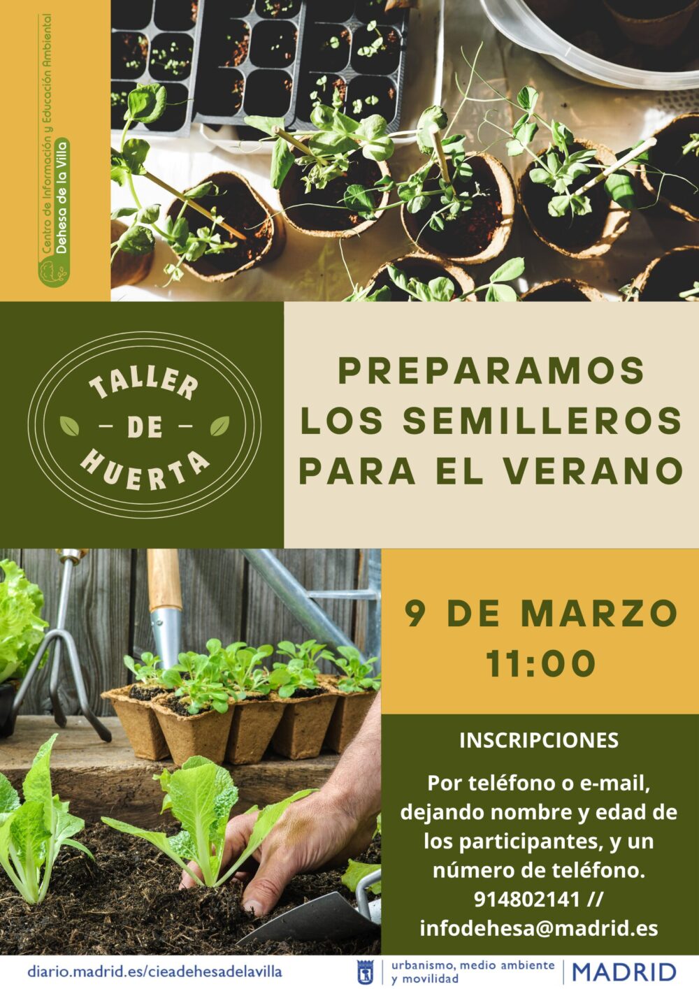 La inscripción se puede realizar mediante correo electrónico o telefónicamente: infodehesa@madrid.es // 914802141