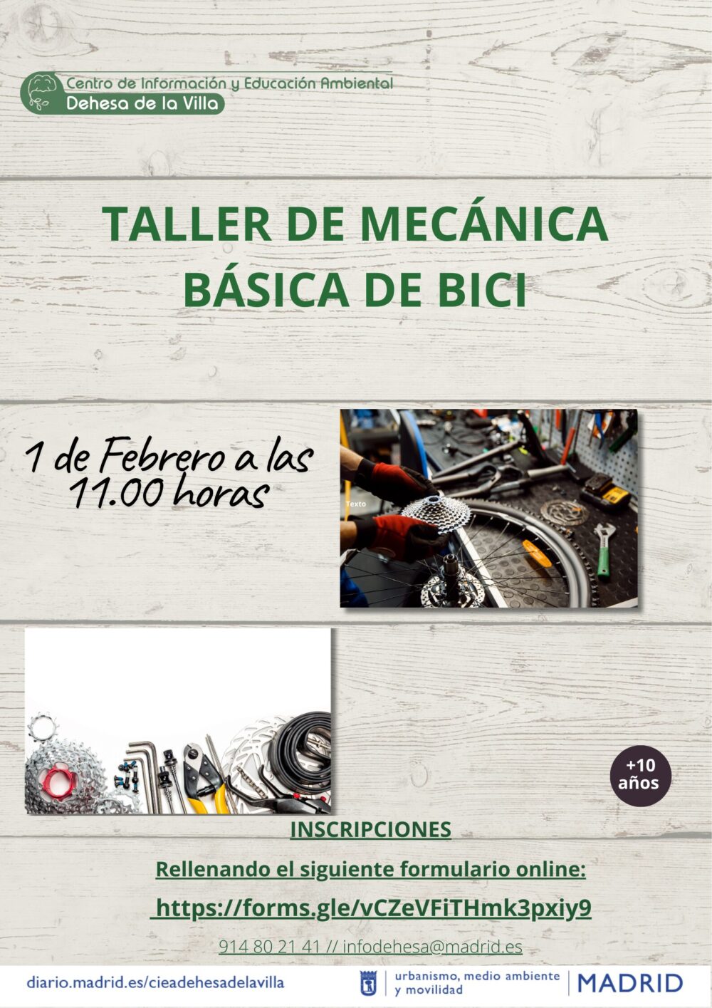La inscripción se puede realizar mediante correo electrónico o telefónicamente: infodehesa@madrid.es // 914802141