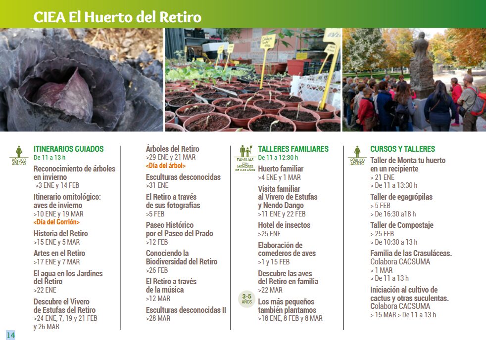 Las actividades que se ofertan desde el Huerto del Retiro son: