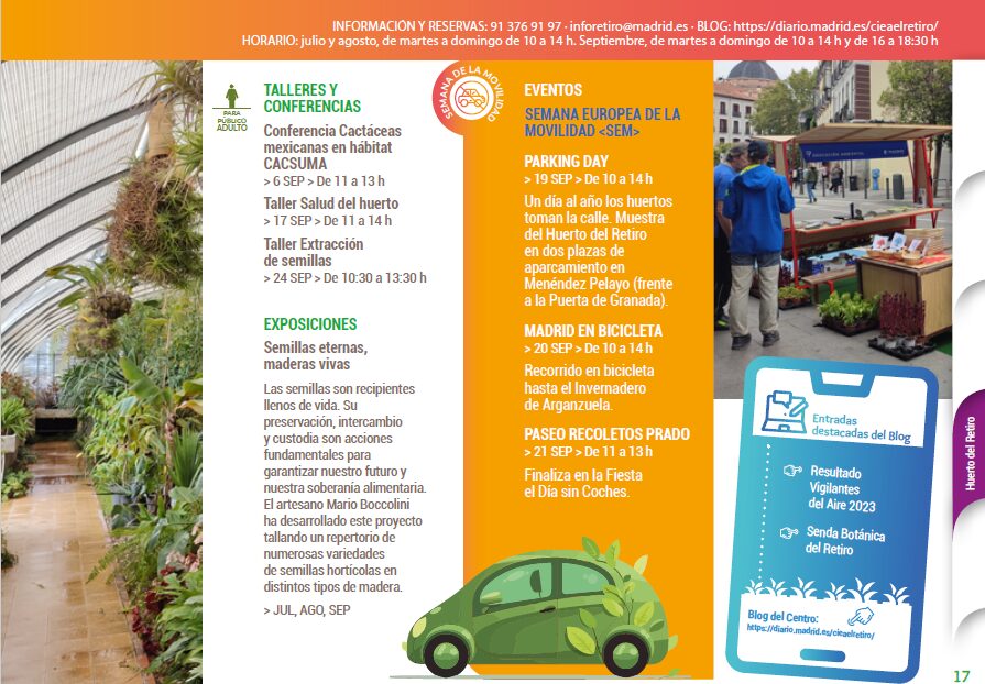 Las actividades que se ofertan desde el Huerto del Retiro son: