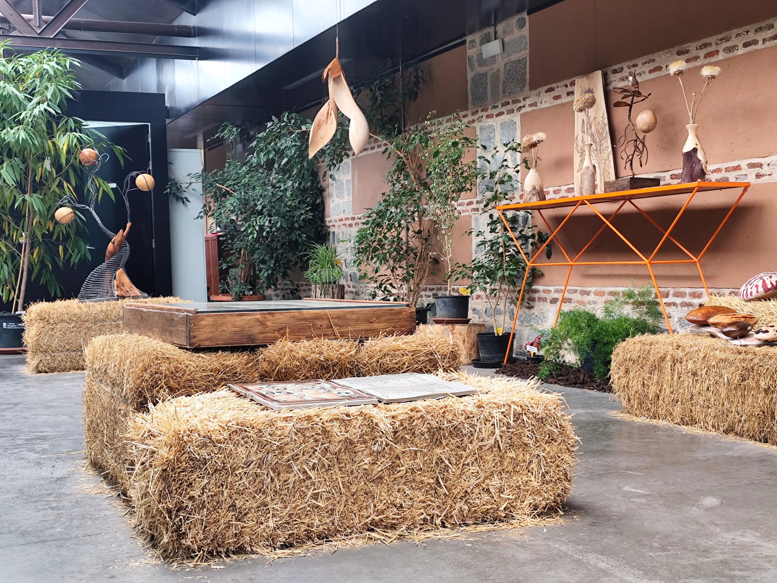 La escultura central en la que el artista estará trabajando durante la propia inauguración proviene de uno de los árboles caídos en los Jardines del Buen Retiro pocos meses antes. Los elementos de hierro provienen de excedentes de obras y construcciones. Con estas prácticas consigue una obra vinculada al territorio y con muy bajo impacto ambiental.