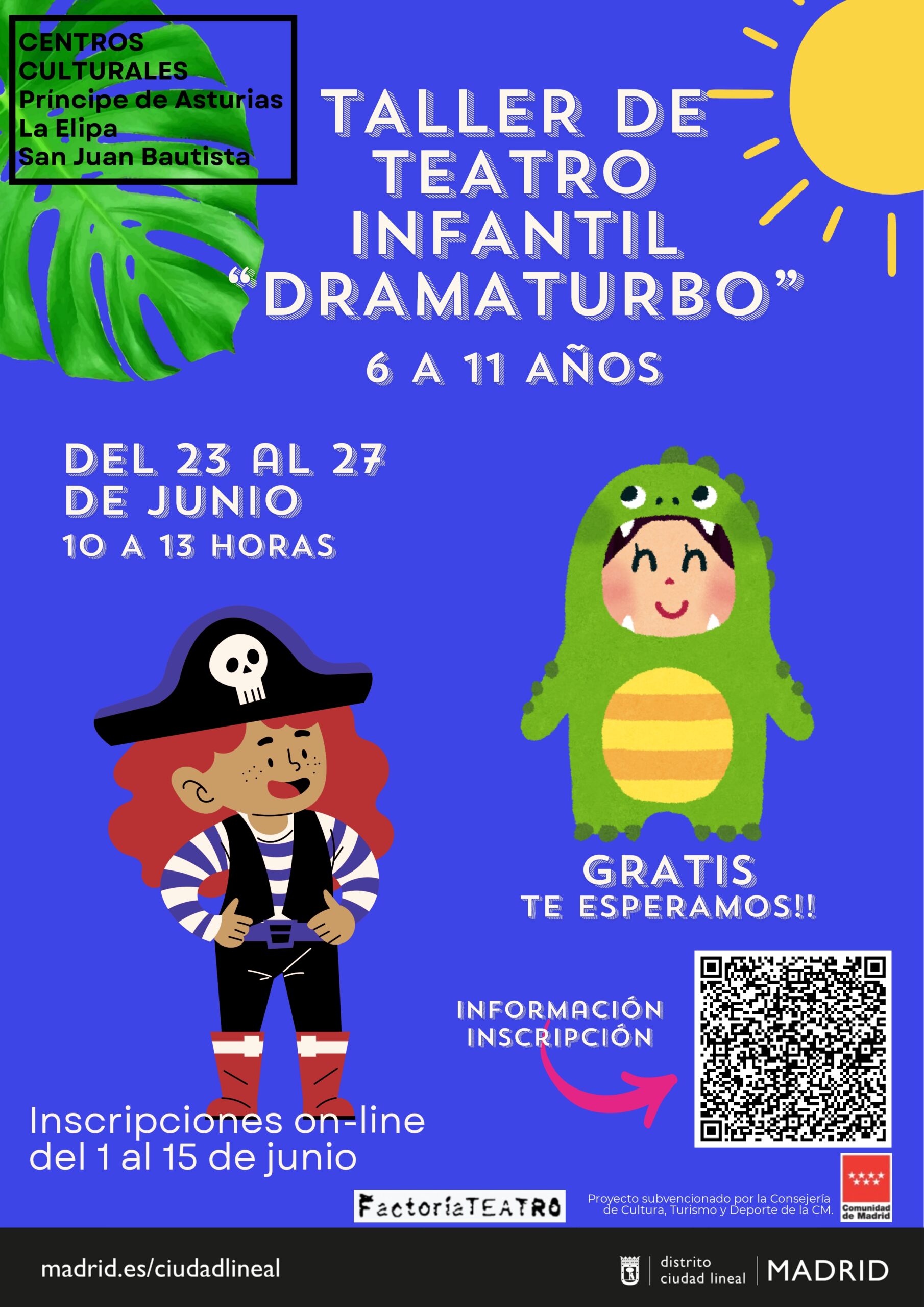 El verano está a la vuelta de la esquina y, en Ciudad Lineal, queremos que los peques lo vivan como se merecen: creando, imaginando y disfrutando al máximo. Por eso, en colaboración con Factoría de Teatro, lanzamos el taller de teatro infantil Dramaturbo, una experiencia única donde los niños y niñas podrán convertirse en auténticos actores y actrices por unos días.