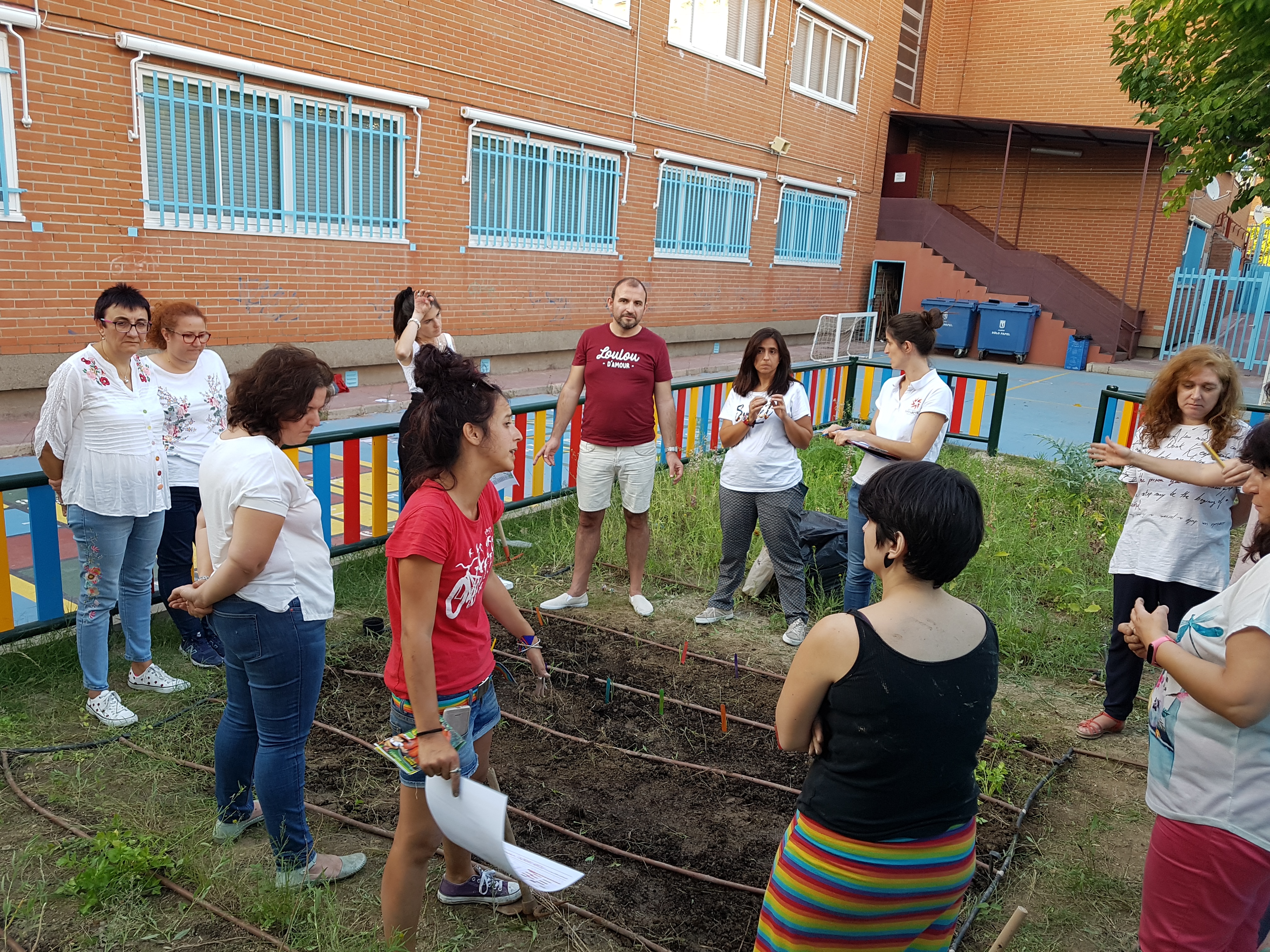 Este año, como ya comentamos, decidimos hacer una formación específica adaptada a las Escuelas Infantiles, ya que trabajar con los más pequeños en el huerto requiere de una perspectiva y herramientas algo diferentes. las Escuelas anfitrionas fueron la EEI La chulapona (Barajas) y la EEI La Paloma (Villa de Vallecas). Pasamos momentos muy divertidos, ¡las profesoras de infantil tienen muchisima creatividad! Para poder favorecer el flujo de información se decidió tener un documento colaborativo común en el que ir aportando diferentes actividades e ideas para trabajar en torno al huerto.