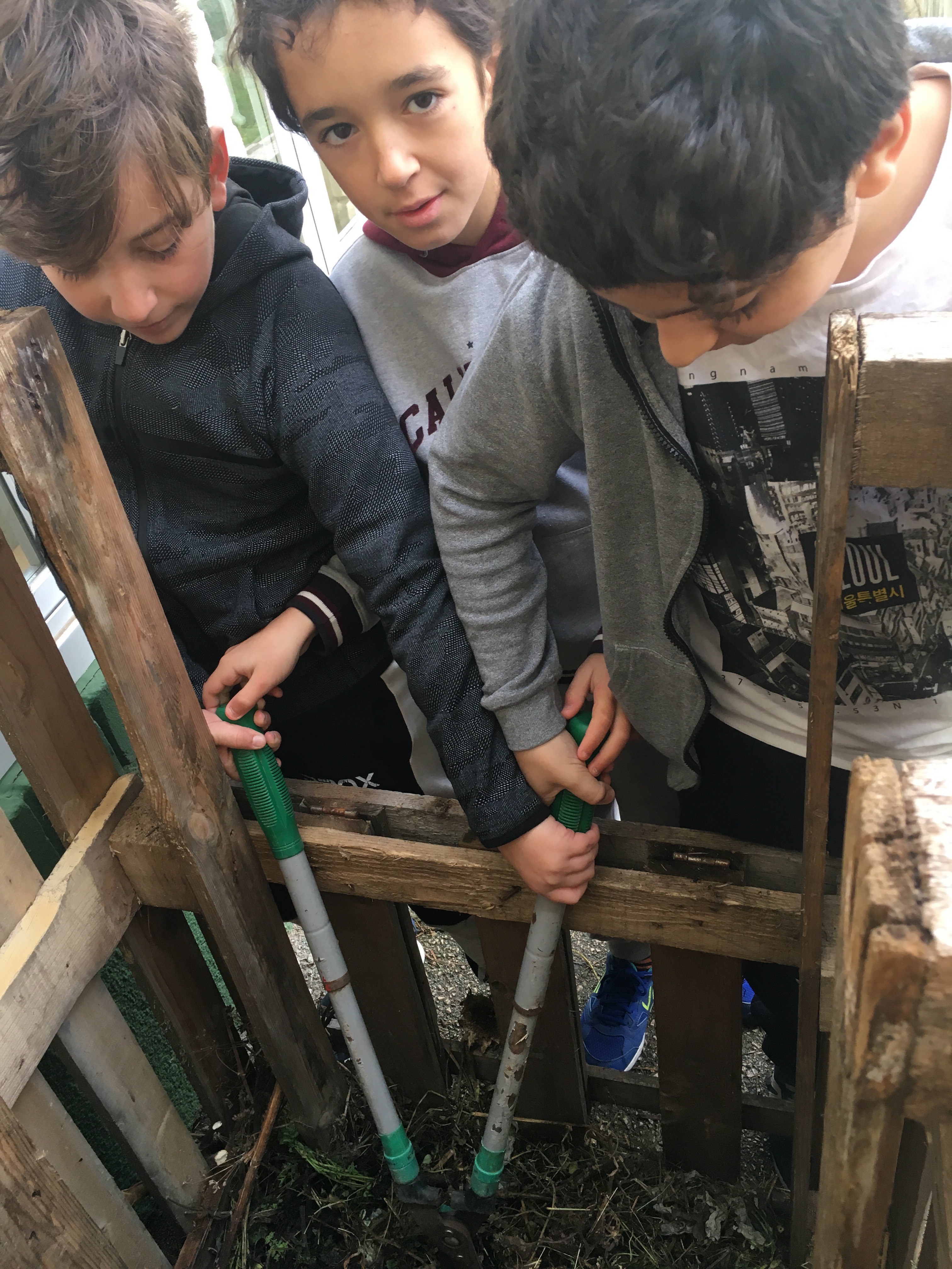«La clase de sexto ha asumido la responsabilidad de cuidar el compost durante este curso.