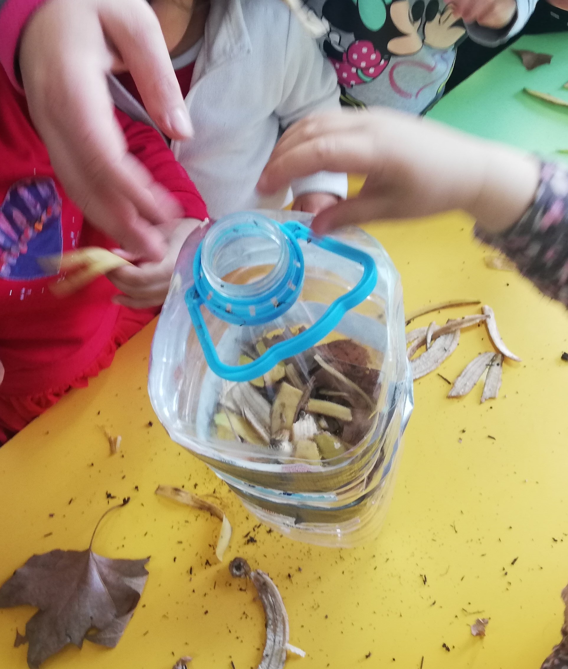 Además, este curso, siguiendo la propuesta de 0 desperdicio del huerto, realizamos una compostera para el aula de naturaleza en la que ellos pueden ir visualizando el proceso de descomposición de la materia orgánica.