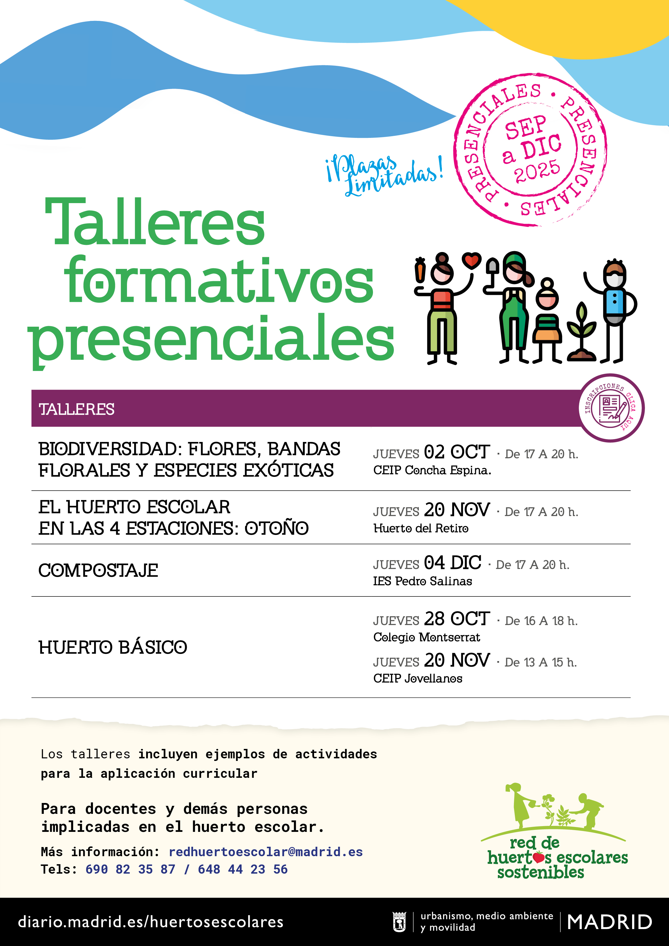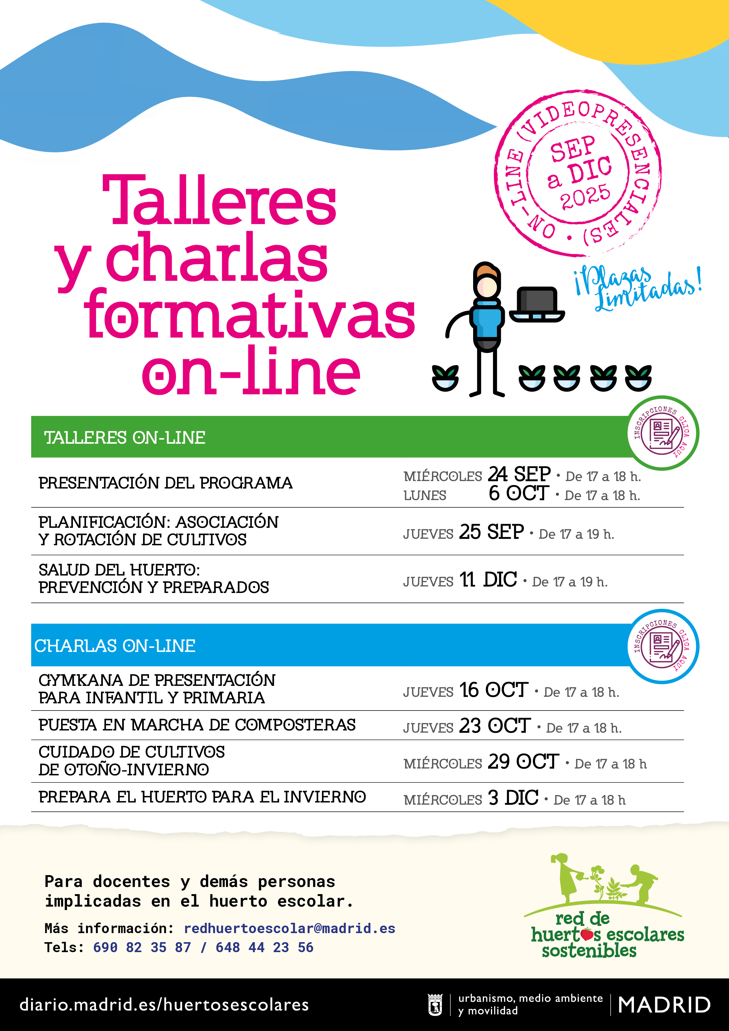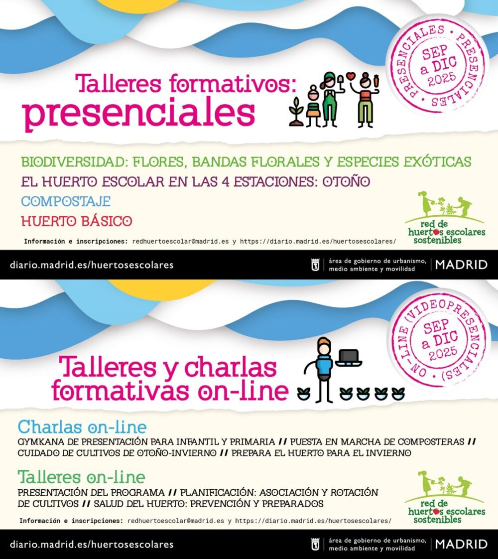 Y además nuestras charlas online de 1 hora, donde poder resolver dudas y aprender aspectos básicos para el otoño – invierno en los huertos escolares. Desde una yincana de presentación del huerto para animar a otros docentes hasta como preparar el huerto de cara a las vacaciones navideñas. Puedes INSCRIBIRTE a los talleres y charlas online PINCHANDO AQUÍ.