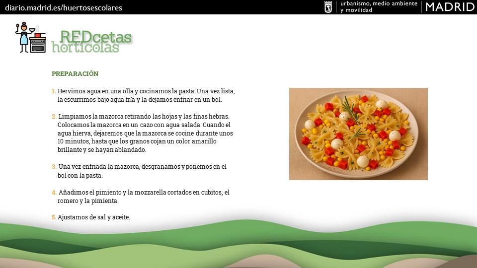 Para este otoño, os proponemos una ensalada de pasta con maíz, mozzarella y pimiento rojo. Haz clic AQUÍ o en la imagen inferior para descargarla.