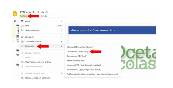 ¿Y vosotros/as? ¿Cómo consumís el maíz que recolectáis en vuestro huerto? Animaros a compartir vuestra receta y mándanosla a redhuertoescolar@madrid.es. Descargad AQUÍ la plantilla, completadla y enviadla en un archivo PDF. En la imagen inferior podéis ver cómo descargar la plantilla.