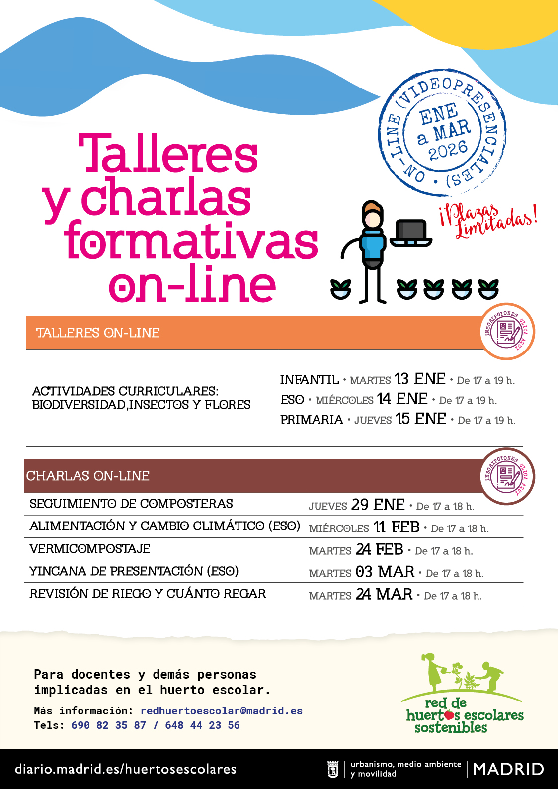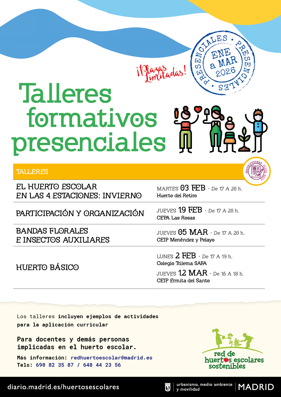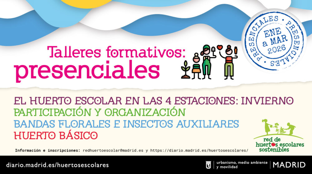 De enero a marzo de 2026 te invitamos a participar en nuestras formaciones presenciales y online. Con charlas y talleres prácticos sobre temas clave para esta temporada: el huerto en invierno, biodiversidad, riego, compostaje y vermicompostaje. Además de talleres sobre actividades curriculares vinculadas al concurso anual.