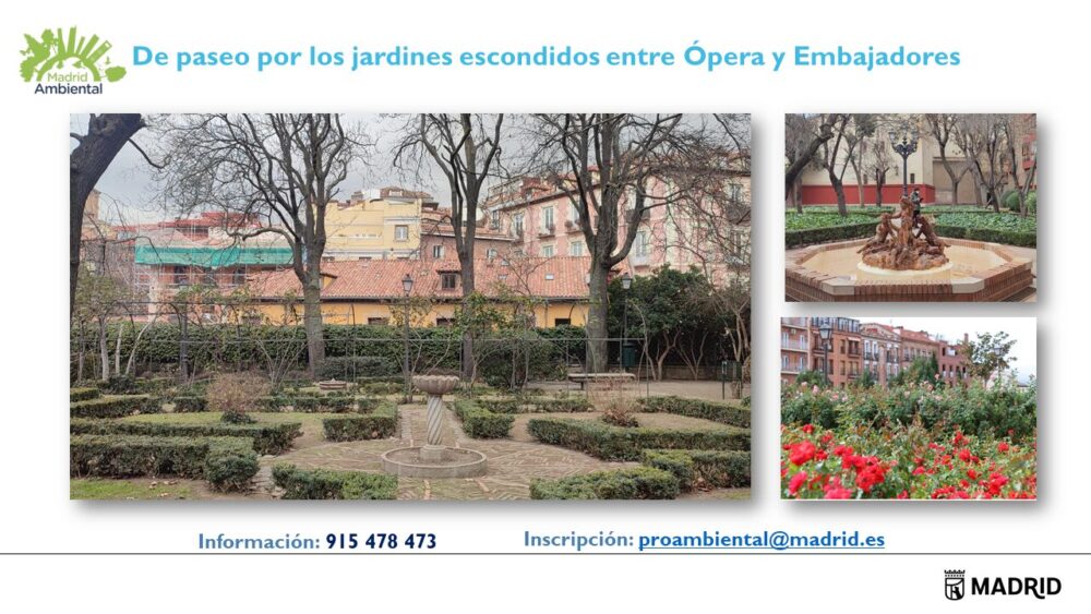 Descripción de la actividad JE de Ópera a Atocha ofertada por el Programa Madrid Ambiental del Ayuntamiento de Madrid. Resume el recorrido, nombrando los jardines que se visitan además de algunos detalles destacables de cada espacio verde.