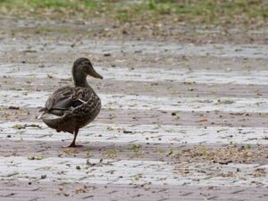 Giramos la vista a una pradera cercana y otra pareja, esta vez de ánades azulones (Anas platyrhynchos), se escondían entre el vergel de hierbas silvestres. Tal vez estuvieran empollando, ya que la época de cría puede extenderse hasta junio.