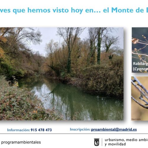 Descripción del itinerario ornitológico llevado a cabo por el Porgrama Madrid Ambiental en el Monte del Pardo el sábado, 11 de octubre. Contiene el nombre de las especies observadas, características propias de cada especie que nos ayudan a identificarlas, descripción del entorno y de algunos comportamientos.