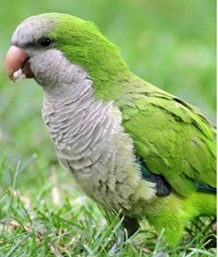 [Imagen 1: Cotorra argentina (Myiopsitta monachus). Fuente: Anexo X de la Memoria del Plan de Fomento y Gestión de la Biodiversidad del Ayuntamiento de Madrid: Lista de especies invasoras presentes en el Municipio de Madrid y sus posibles medidas de control]